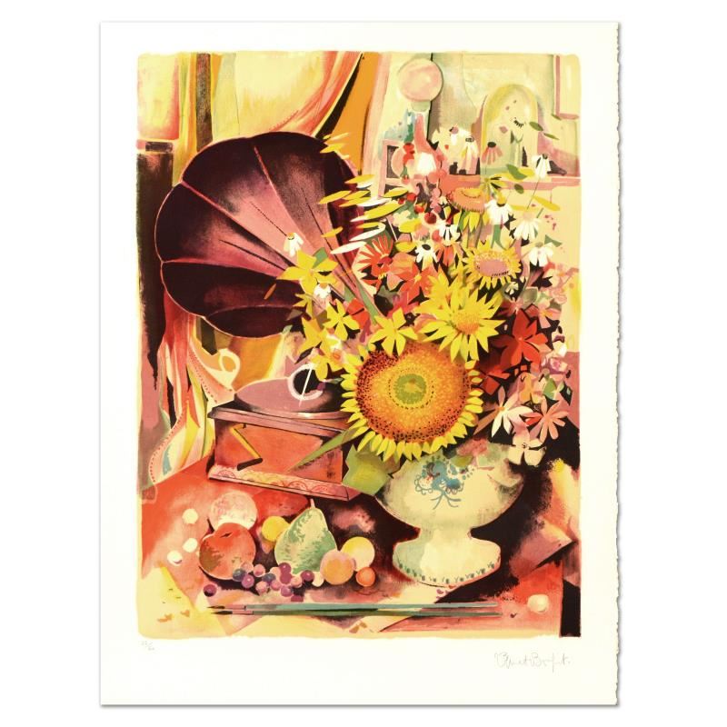 "Bouquet" is a limited edition lithograph on paper by Robert Vernet Bonfort, numbered and hand signed by the artist! Measures approx. 21" x 29.5" (border), 19" x 27" (image).