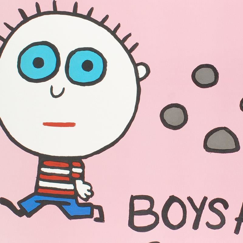 Pop artist Todd Goldman is known all across the globe for his whip-smart and wickedly funny puns and pictures! "Boys Are Stupid, Throw Rocks at Them" is a limited edition lithograph on paper, numbered and hand signed by Todd. Includes Certificate of Authenticity! Measures approx. 42.5" x 32" (no border).