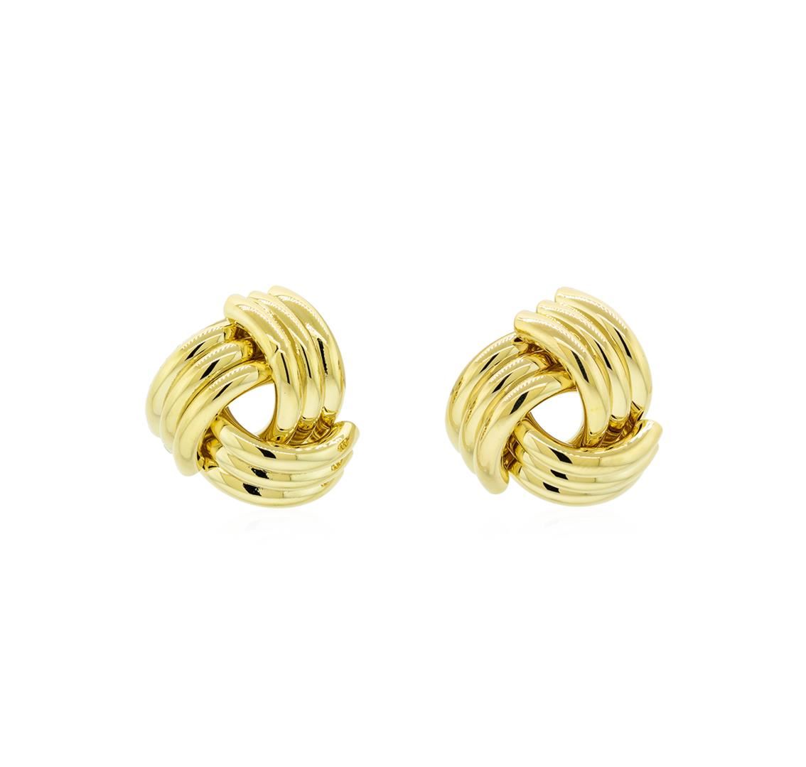 High end designer jewelry. Braided Post Earrings - Gold Plated. Gold Plated Stud Set. Gold. 1inches.