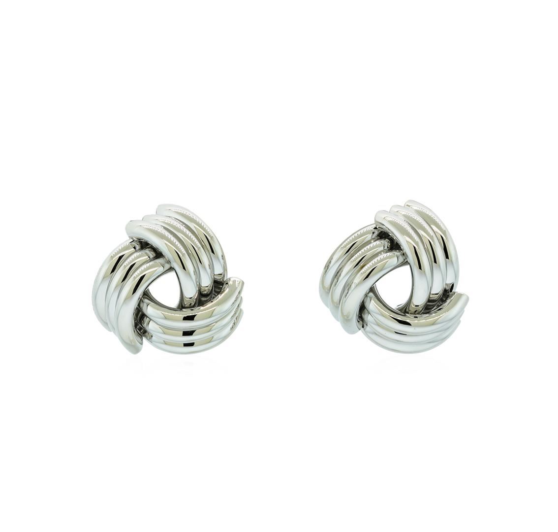 High end designer jewelry. Braided Post Earrings - Rhodium Plated. Rhodium Plated Stud Set. Silver. 1inches.