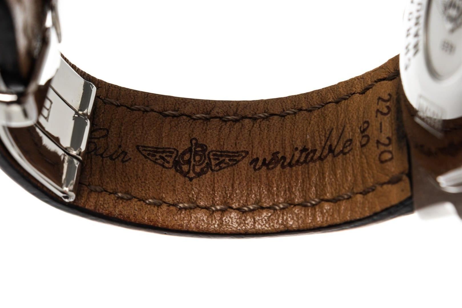 Breitling Black Leather Chronomet Watch with leather, silver-tone hardware.