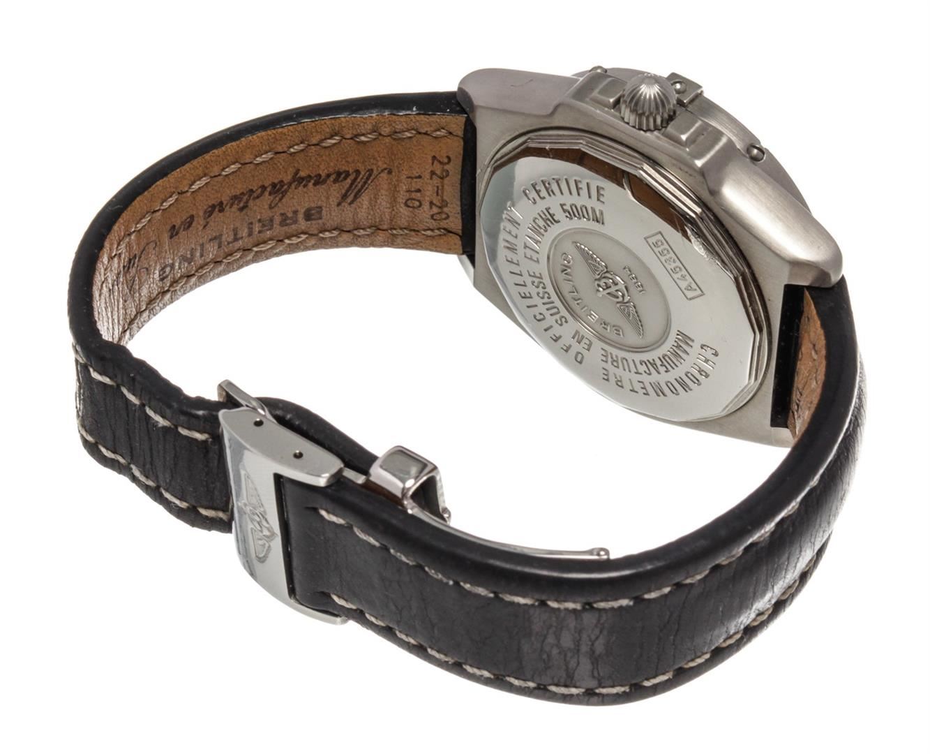 Breitling Black Leather Chronomet Watch with leather, silver-tone hardware.
