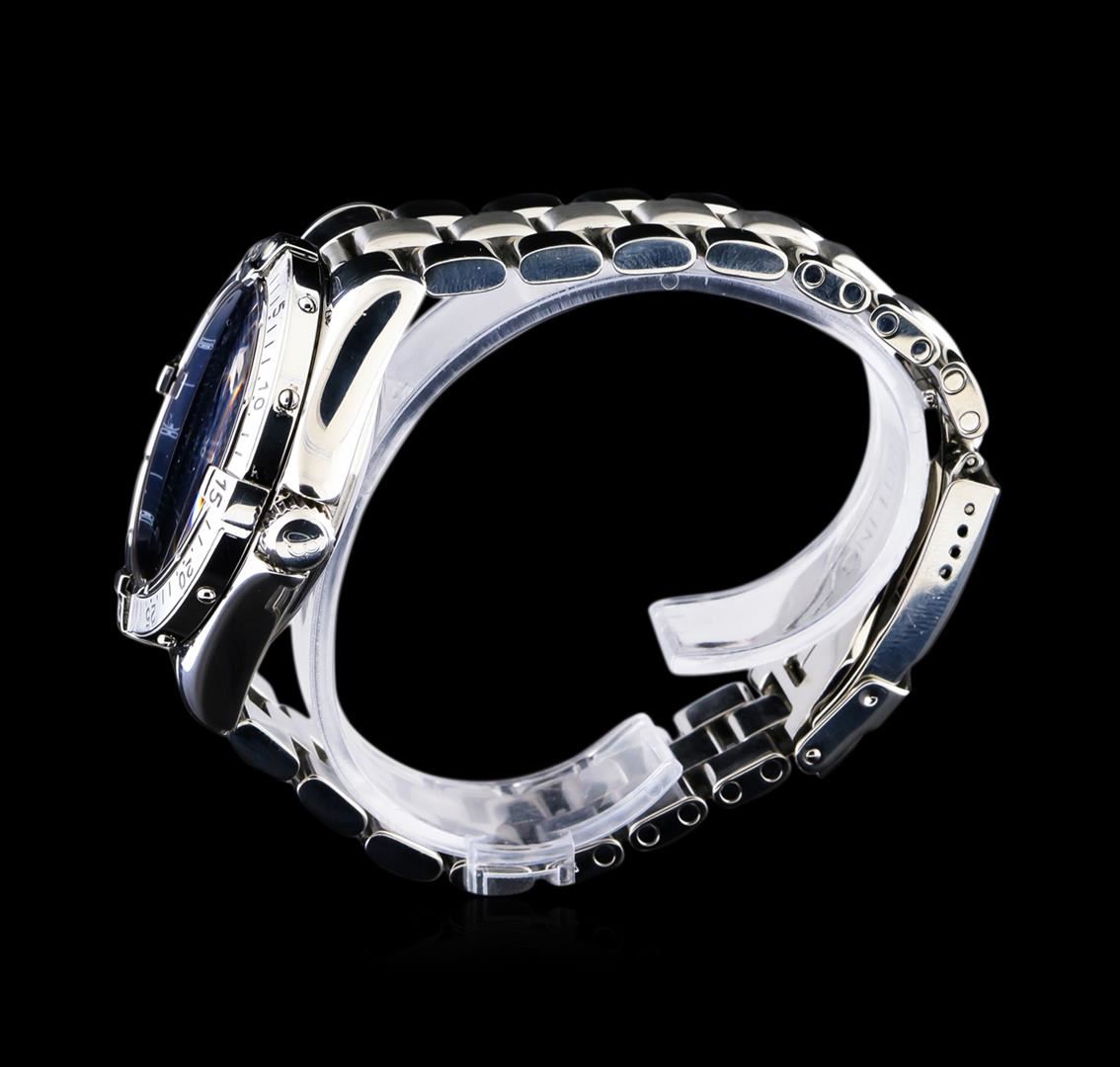 One Breitling SuperOcean watch featuring: Case: Stainless steel. Bezel: Stainless steel, rotating. Dial: Blue color; white/silver tone hands; white/silver tone hour numerals. Features: Date window located at the 3 o'clock position. Bracelet: Stainless steel.