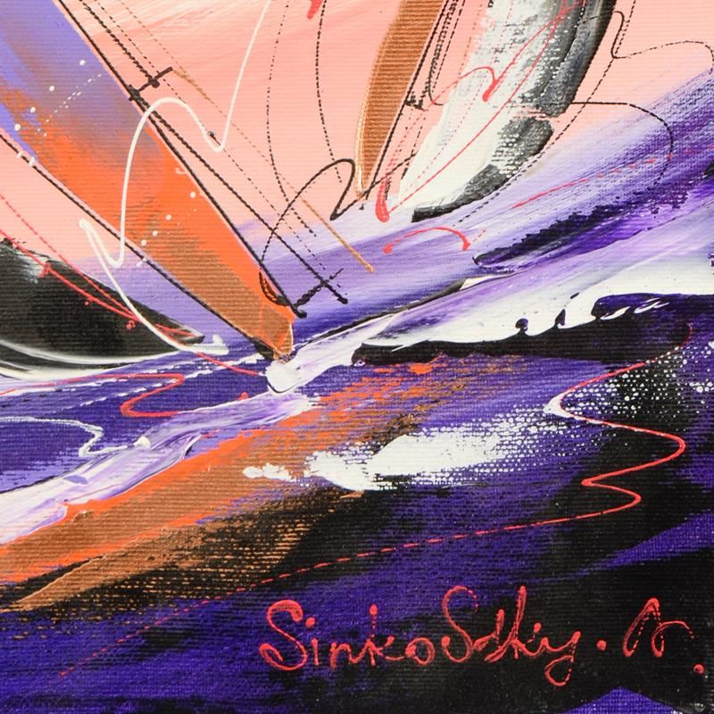 Bright Sunset is an original acrylic painting on stretched canvas by Natalia Sinkovsky, hand signed by the artist. Includes Letter of Authenticity. Measures approx. 12" x 12" (image).