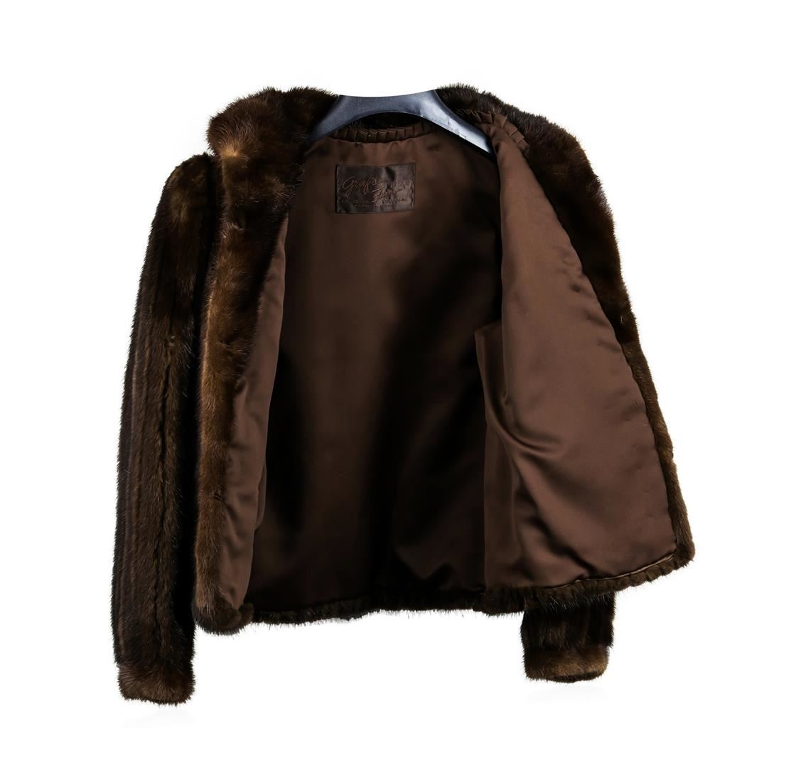 One Brown Lunaraine Mink Jacket. Corduroy-cut jacket. Small length: 22" long. Price new retail: $2000.