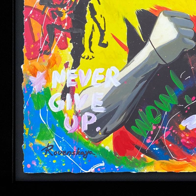 "Bruce Lee & Kung Fu Panda" is a one-of-a-kind mixed media on deckle edge paper by Nastya Rovenskaya, Hand signed by the artist. This piece comes floating in a custom frame. Includes Letter of Authenticity. Measures approximately 24" x 29" (framed), 20" x 25" (image).