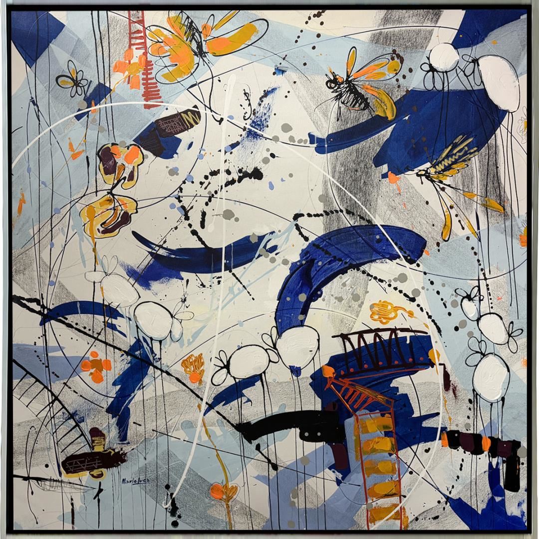 This exquisite original acrylic on canvas, exemplifies the pinnacle of artistic craftsmanship. The vibrant colors and intricate details invite viewers to engage with the artwork on a profound level. Hand signed by the artist, it arrives professionally framed and ready to hang. Art size 55x55" framed size 57x57"