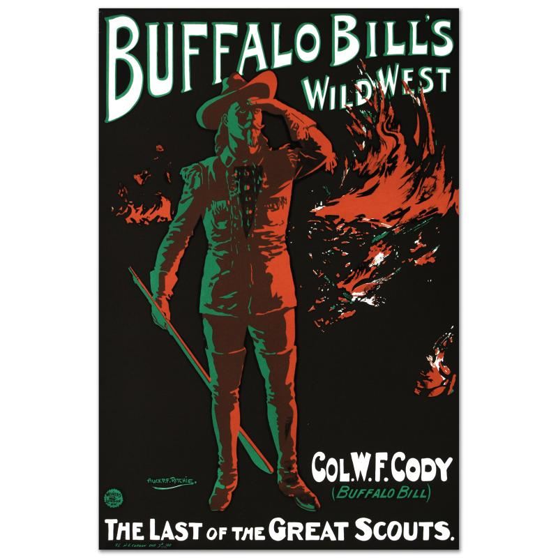 "Buffalo Bills Wild West" is a hand pulled lithograph on paper by the RE Society, image originally by Alick Penrose Ritchie. Includes Certificate of Authenticity! Measures approx. 20" x 30" (image).