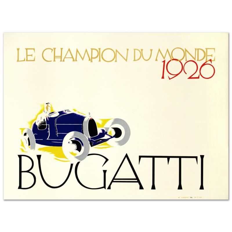 "Bugatti: Le Champion du Monde" is a hand pulled lithograph by the RE Society, image originally by Ernst Deutsch-Dryden. Includes Certificate of Authenticity! Measures approx. 31.5" x 23.5" (image).
