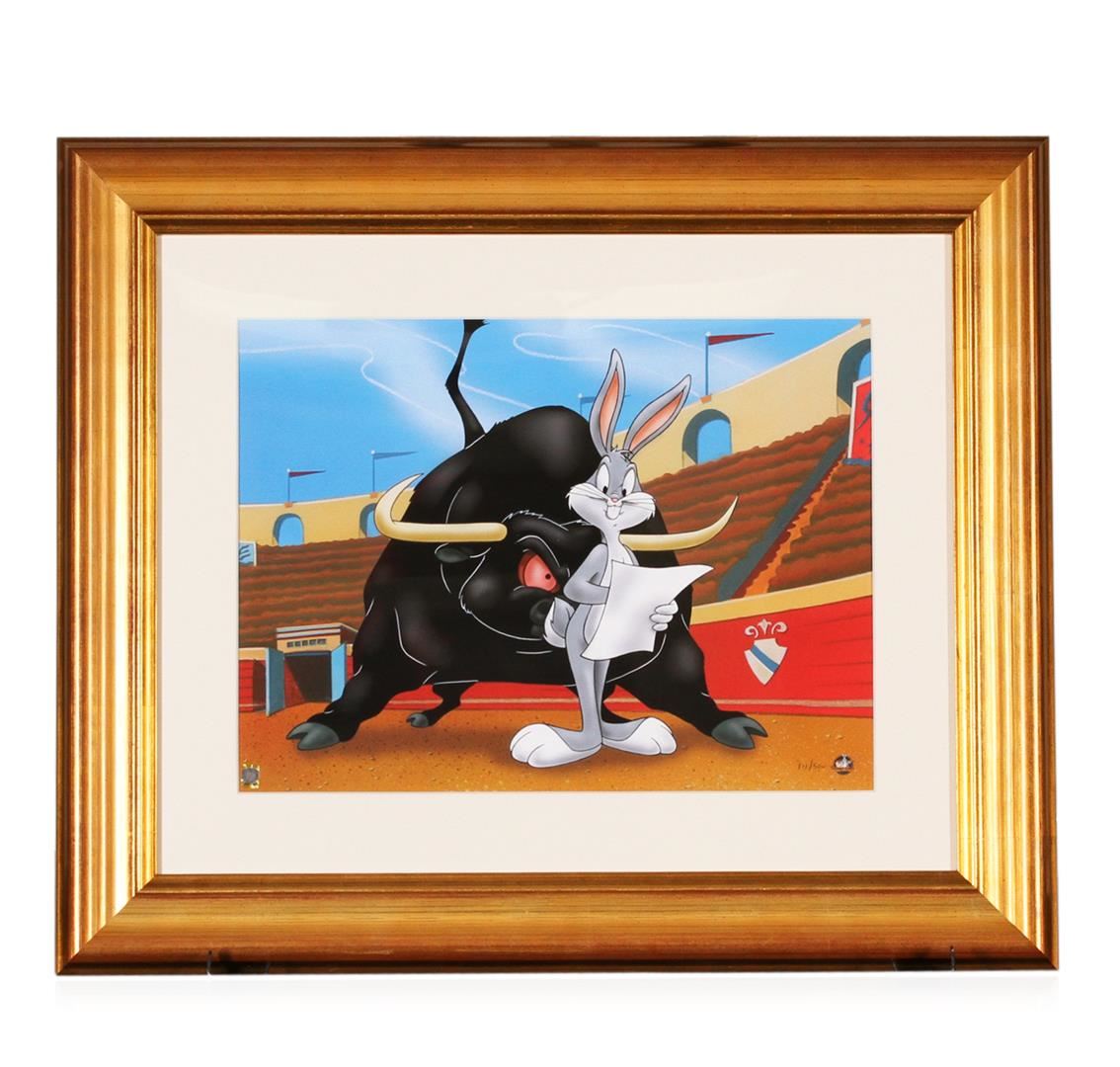 Warner Brothers has licensed and authenticated the classic Bugs Bunny image from his cherished Looney Tunes cartoon series. Produced as a limited edition giclee on mylar paper, and beautifully framed in gold wood, Bully for Bugs still makes us laugh even though it's captured here in still motion; and "That's All Folks!".