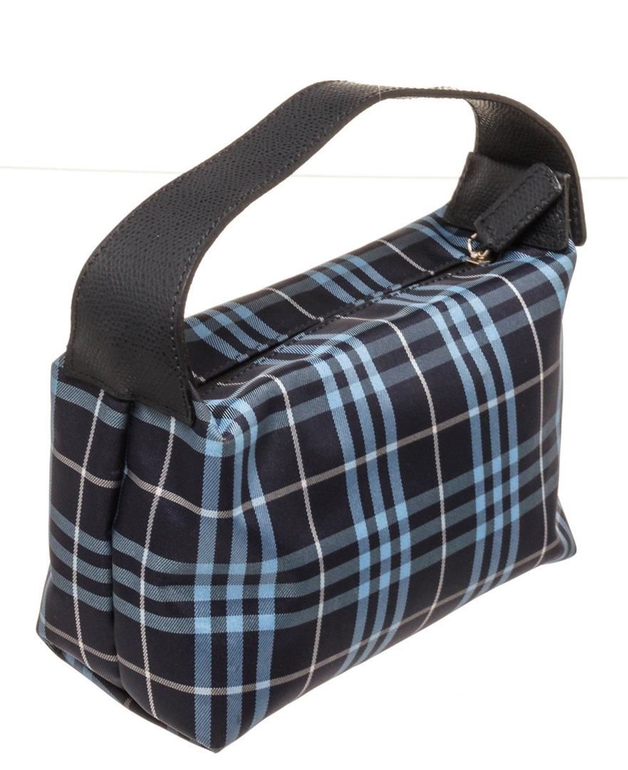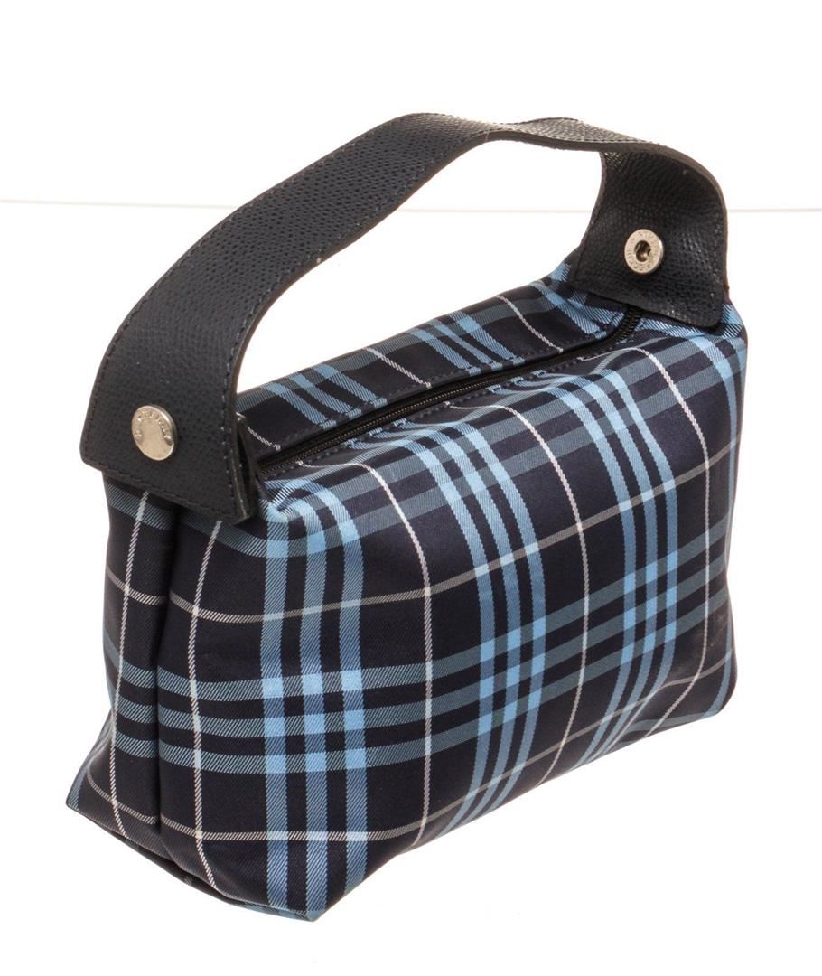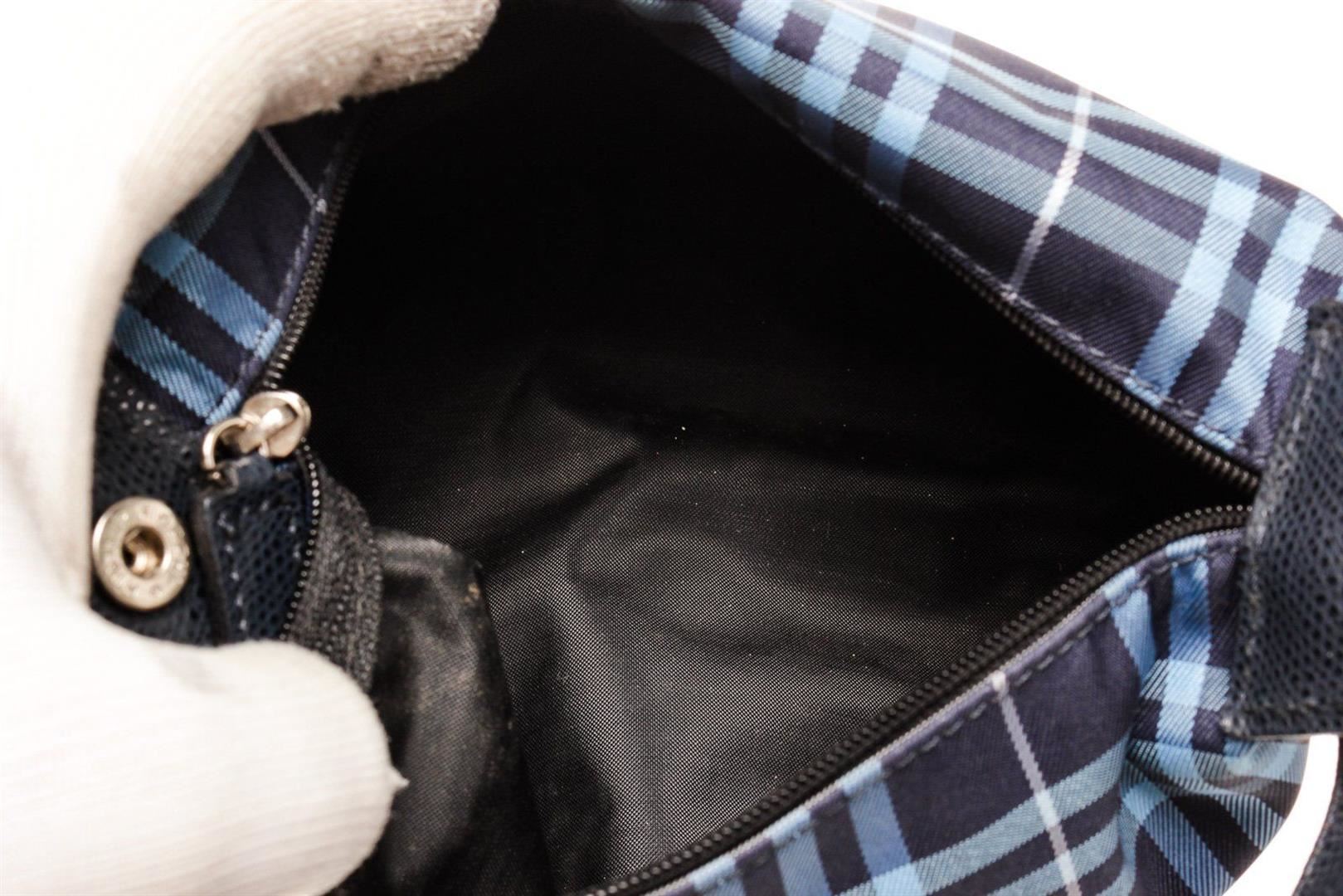 Burberry Blue Canvas Small Shoulder Bag with optional tan leather shoulder or crossbody straps, blue canvas lining, optional interior pouch with zip top closure,