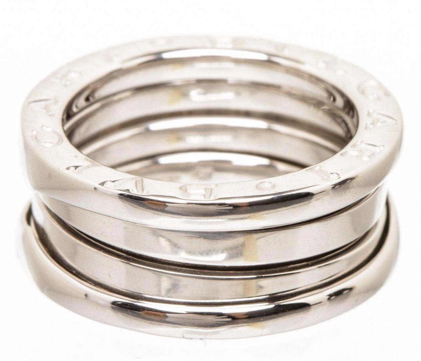 Bvlgari 18K white gold B.zero1 ring double band in designer size 48. Measurements: Length: 1 in / 3 cm Width: 1 in / 3 cm 1 in / 3 cmCONDITION: Pre-Owned Good overall, please see photographs for detail.