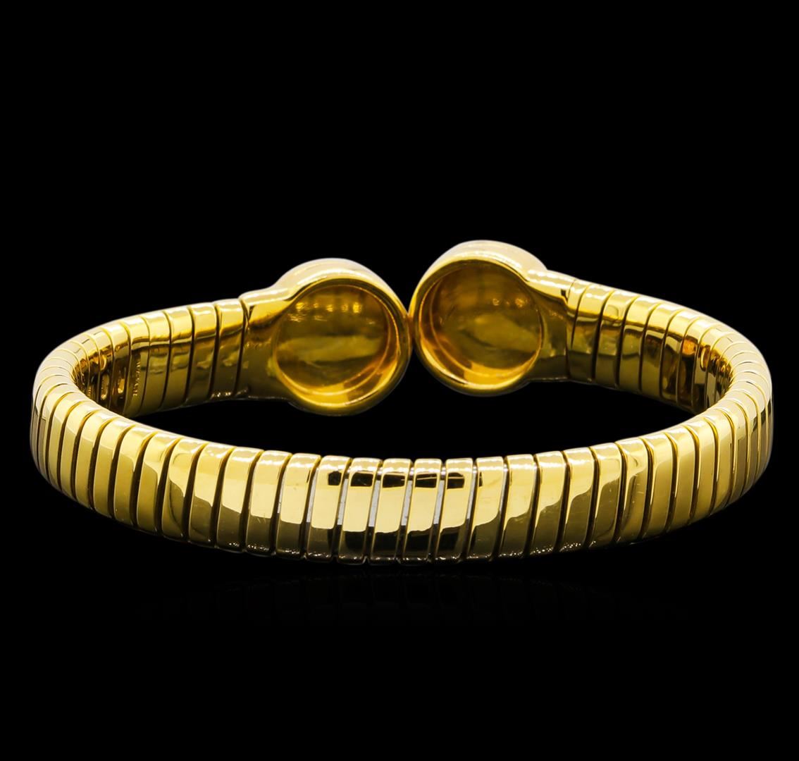 One Bvlgari cuff bracelet featuring: 18KT yellow gold weighing 40.20 grams.