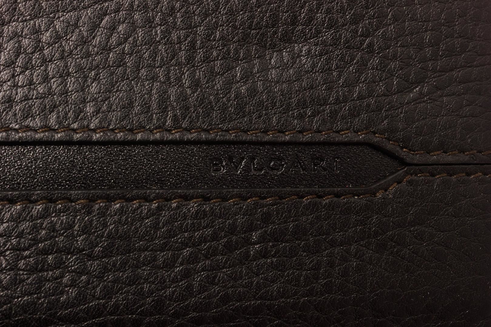 Bvlgari Black Leather Zip Around Wallet with gold-tone hardware, trim leather, interior card holder pocket, leather lining, interior three compartments pocket and zipper closure.