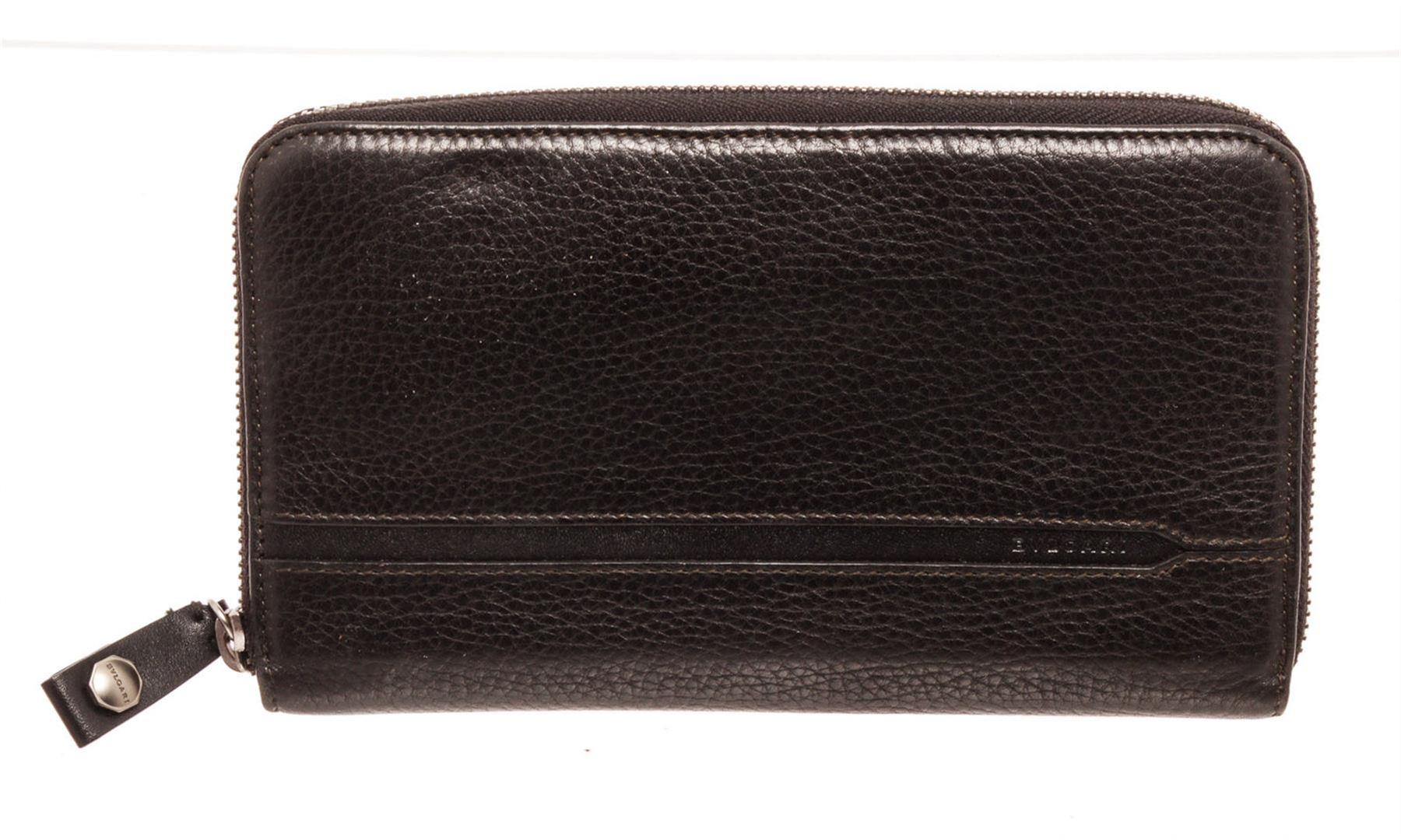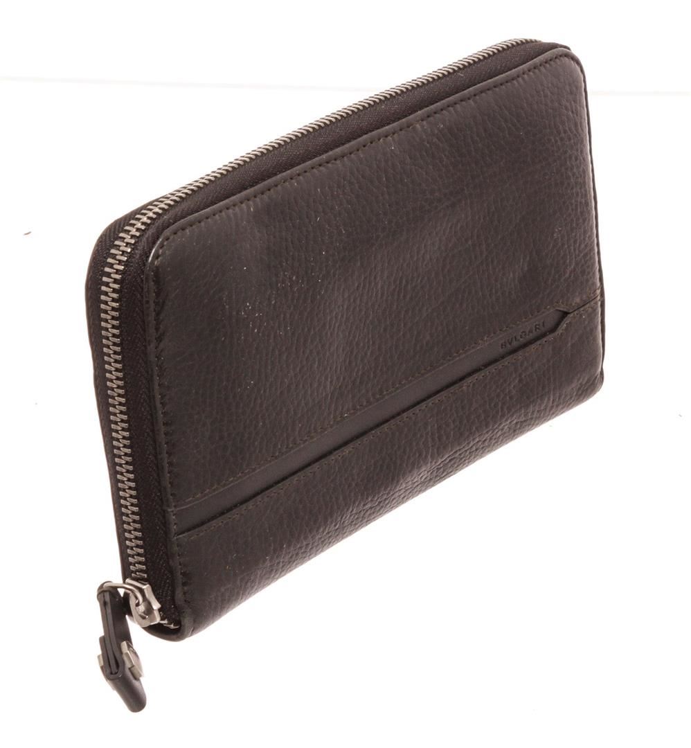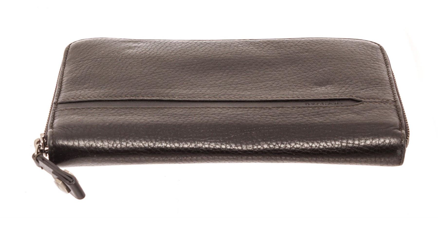 Bvlgari Black Leather Zip Around Wallet. Please see photos and description for all available information! Bvlgari Black Leather Zip Around Wallet with gold-tone hardware, trim leather, interior card holder pocket, leather lining, interior three compartmen