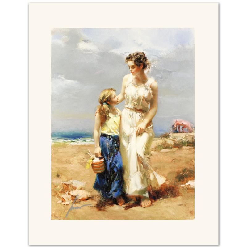 "By the Sea" is a limited edition giclee on canvas, numbered and hand signed by Pino (1939-2010). Includes Certificate of Authenticity! Measures approx. 12" x 16" (image).