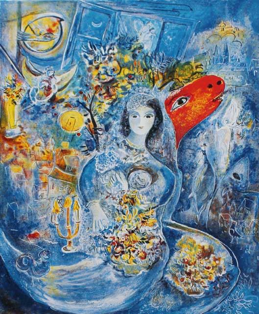 CHAGALL **BELLA ** LITHOGRAPH. Artist: Marc Chagall - Title: Bella - Medium: Lithograph on Paper - Image Size: Approximately 19 inches x 14 ¾ inches - Paper Size: Approximately 24 inches x 17 inches - Signature: Facsimile Signed - Edition: 375 - Details: This work comes with a Certificate of Authenticity - Biography: One of the greatest names in the history of art is Marc Chagall. Born in old Czarist Russia in 1887, he lived to the ripe old age of 98. His passing came in his adopted home in Paris. Chagall's story begins with the Primitivist Movement of the turn of the century. He moved to Paris in 1910, where he studied the masters Cezanne, Van Gogh and Paul Gauguin. Drawn to the excitement of the Russian Revolution, he returned to Russia in 1914 and founded the Constructionist School in 1917. - After two years of intense controversy and artistic conflict, Chagall returned to a dreamy fairy tale art form that is the modern forerunner of Traditional Surrealism. His grandest showing is at the Hermitage in St. Petersburg, Russia, the largest art museum on earth. He is displayed at the most important museums without exception. His original oils bring millions of dollars art auction. His signed and numbered graphics command tens of thousands. - Warranty: Item GUARANTEED to be as described