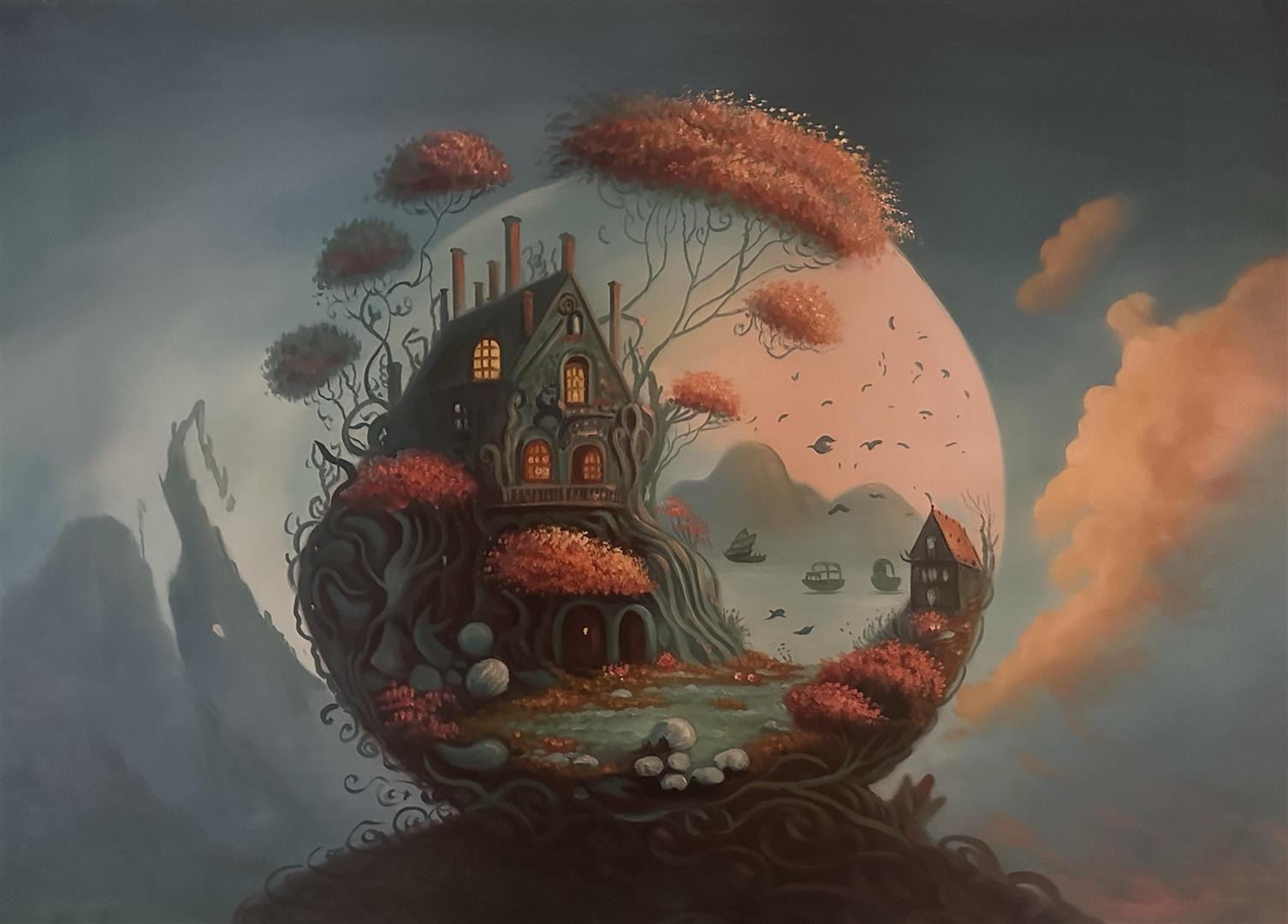 A stunning Surreal painting by emerging young artist Mani. 20"x30" original on canvas, with COA