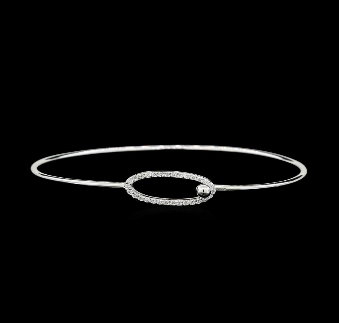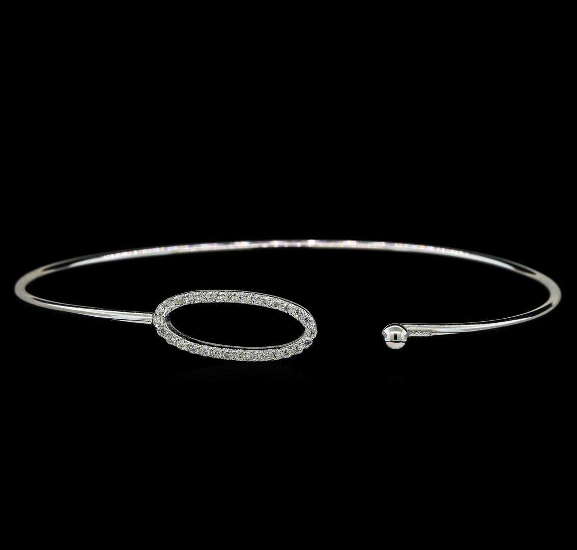 High end designer jewelry. CZ Oval Hook Bangle - 925 Silver. Silver925 Bracelet. Silver/ Clear. 6.5inches. Total Weight: 3.9 grams.