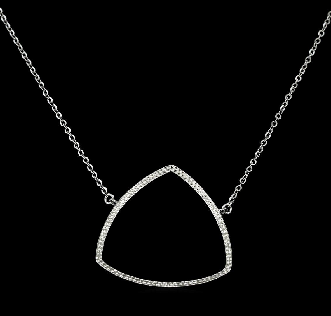 High end designer jewelry. CZ Triangle Pendant Necklace - 925 Silver. Silver925 Chain. Silver/ Clear. 16/3inches. Total Weight: 3.4 grams.