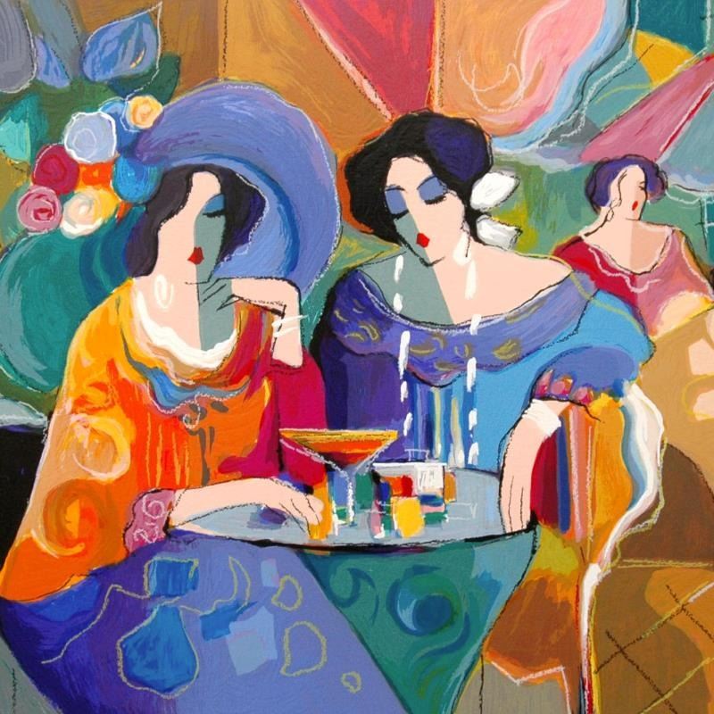 Cafe Array by Maimon, Isaac. "Cafe Array" is a limited edition serigraph on paper by Isaac Maimon, numbered and hand signed by the artist. Includes Letter of Authenticity. Measures approx. 24" x 19" (border), 21.5" x 16.5" (image).