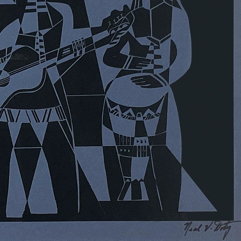 "California Jam" is a one-of-a-kind linocut on paper by Neal Doty (1941-2016), hand signed by the artist. This piece comes custom framed. Includes Letter of Authenticity. Measures approx. 31.5" x 25.5" (frame), 23" x 17" (image).
