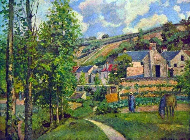 Artist : Camille Pissarro - Title: Landscape at Pontoise - Medium: Fine Art Reproduction Giclee on Canvas - Image Size: Approximately 14.75 inches x 20 inches - Unframed on Unstretched Canvas - Biography: Camille Pissarro was a Danish-French Impressionist and Neo-Impressionist painter born on the island of St Thomas. His importance resides in his contributions to both Impressionism and Post-Impressionism. Pissarro studied from great forerunners, including Gustave Courbet and Jean-Baptiste-Camille Corot.