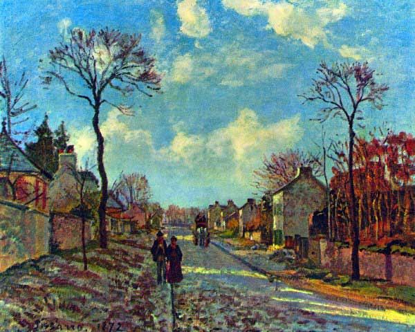 Artist : Camille Pissarro - Title: Strait of Louveciennes - Medium: Fine Art Reproduction Giclee on Canvas - Image Size: Approximately 16 inches x 20 inches - Unframed on Unstretched Canvas - Biography: Camille Pissarro was a Danish-French Impressionist and Neo-Impressionist painter born on the island of St Thomas. His importance resides in his contributions to both Impressionism and Post-Impressionism. Pissarro studied from great forerunners, including Gustave Courbet and Jean-Baptiste-Camille Corot.