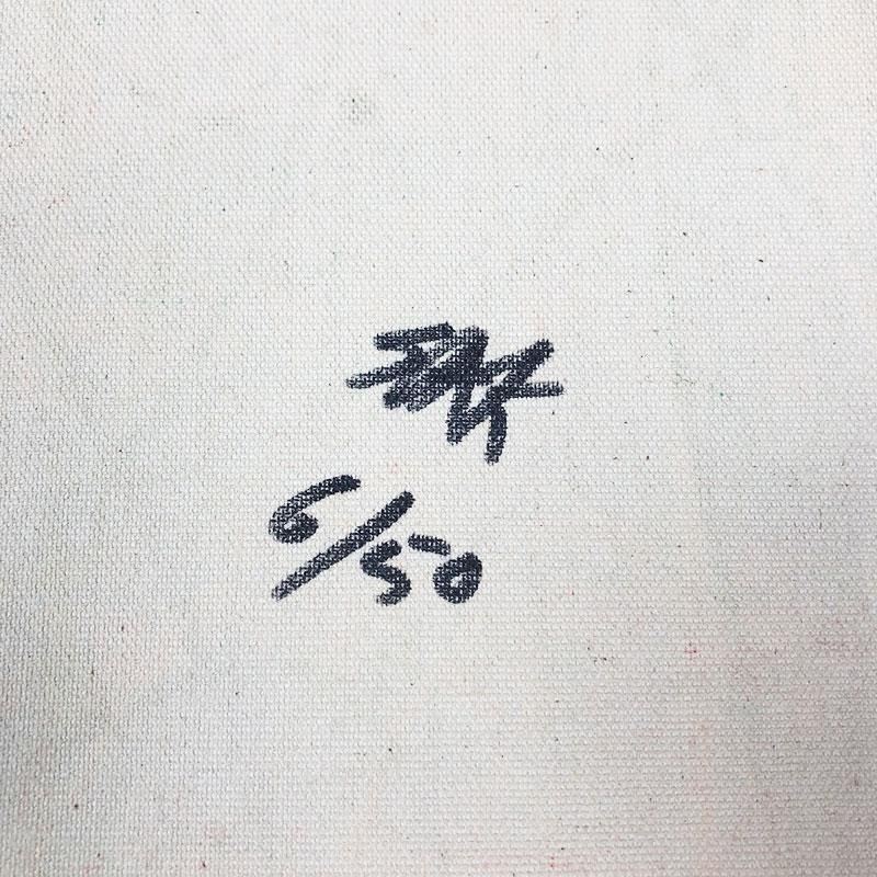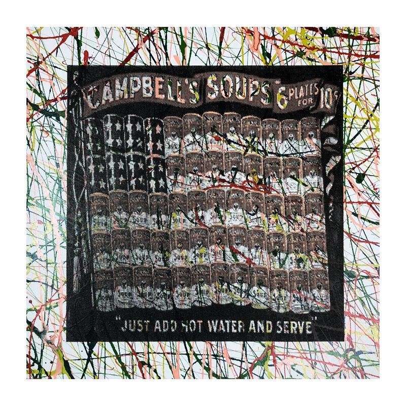 "Campbell's Soup Flag " is a limited edition hand pulled silkscreen mixed media on canvas by Andy Warhol protege Steve Kaufman (1960-2010). This piece is numbered and 6/50 and hand signed inverso. Includes letter of authenticity. As is common with Kaufman's works, this piece may have perceived minor flaws, but is in overall good condition. Measures approximately 17" x 17" (image).