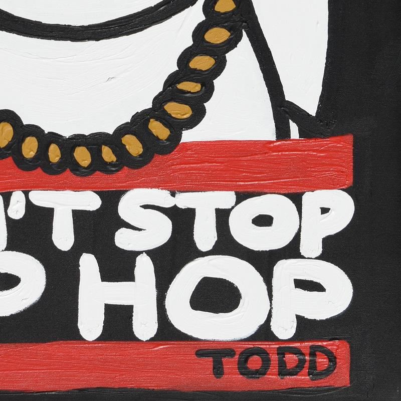 "Can't Stop Hip Hop" is an original acrylic painting on gallery wrapped canvas by Todd Goldman, hand signed by the artist. Includes Letter of Authenticity. Measures approx. 24" x 36" (image). Due to the way this piece was stored there may be minor wear or signs of age (such as wear on the corners) but the piece is in overall good condition.