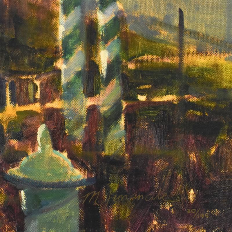 "Canal at Dusk" is a limited edition giclee on stretched canvas by Marilyn Simandle, numbered and hand signed by the artist. Includes Letter of Authenticity. Measures approx. 40" x 30" (image).