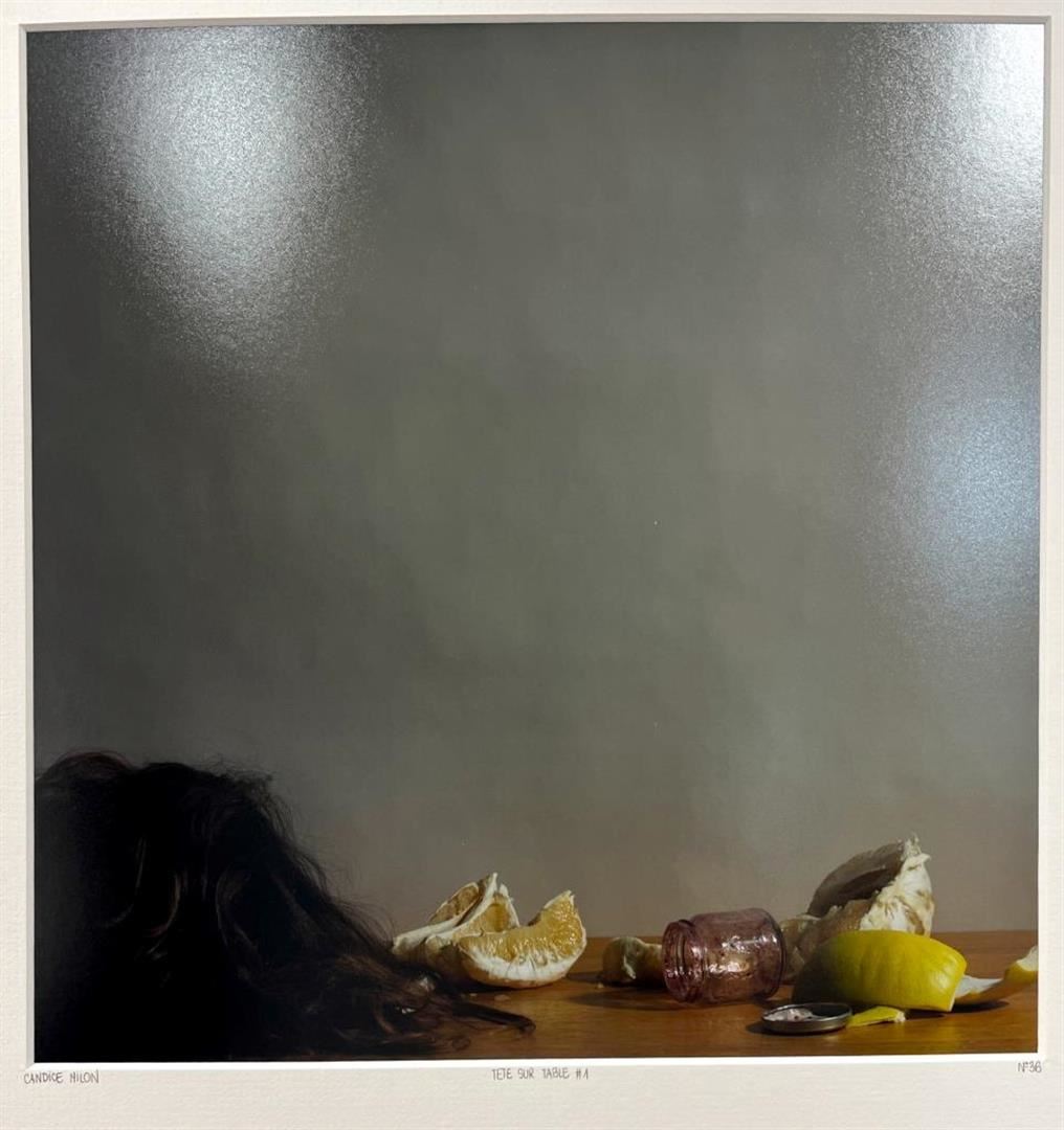 Candice Milon France Tete Sur Table #1 Still Life YellowKorner Certified Photograph. Certificate of Authenticity from YellowKorner affixed to the back. Matted Dimensions 16"x20". Protected with Clear Mylar Sleeve.