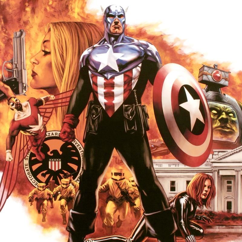 A piece of comic book history, this limited edition, from original art by Steve Epting, depicts a compilation scene starring Captain America. Steve Epting began working with Marvel Comics in the early 1990s; his first assignment was a six part Avengers series, thereafter he became a full time penciler on the Avengers. More recently Epting has been working on the Fantastic Four as well as Captain America. "Captain America #41" is a limited edition giclee on canvas by Steve Epting presented by Marvel Comics, numbered and hand signed by the great Stan Lee! Includes Certificate of Authenticity! Measures approx. 18" x 27" (image).