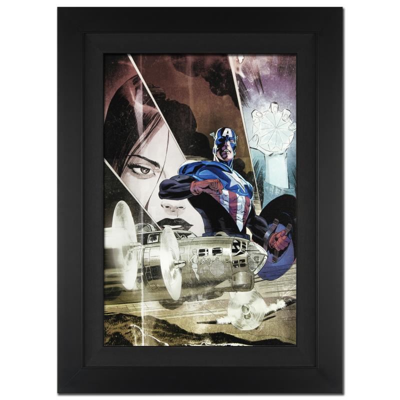 A piece of comic book history, this limited edition, from original art by Lee Weeks, depicts the classic character Captain America. Starting his comic book career in the 1980s, Lee Weeks has worked on the Spider-Man, Hulk, and Captain America franchises. "Captain America: Forever Allies #3" is an extremely limited edition giclee on canvas by Lee Weeks presented by Marvel Comics, hand signed by the great Stan Lee and numbered out of only 10! This piece comes custom framed and ready to hang. Includes Certificate of Authenticity! Measures approx. 25" x 34" (with frame), 18" x 27" (image).