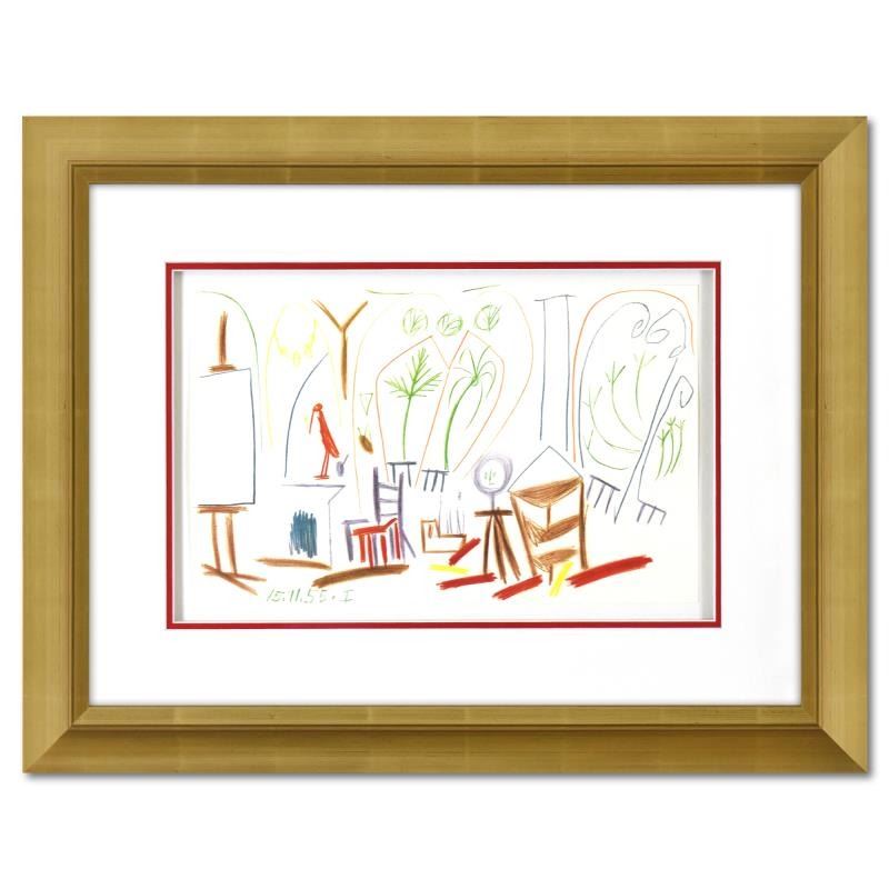 "Carnet de Californie 15.11.55-I" is a lithograph on paper by Pablo Picasso (1881-1973). This piece comes framed. Includes Letter of Authenticity. Measures approx. 27.5" x 21.5" (frame), 17" x 10" (image).