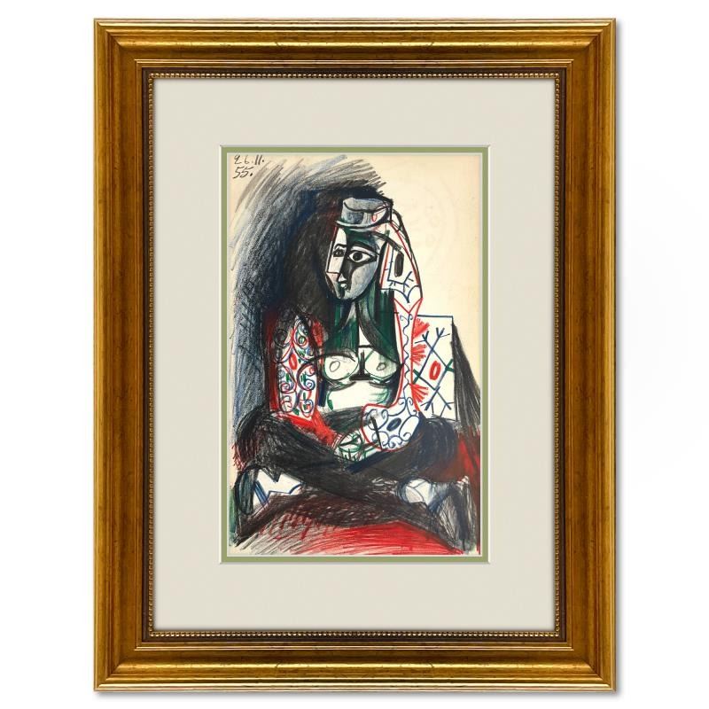 "Carnet de Californie 26.11.55" is a vintage lithograph on paper by Pablo Picasso (1881-1973). This piece is from Picassos Carnet de Californie Series and was printed in Paris France by Mourlot Studios in 1959. This piece comes framed. Includes Letter of Authenticity. Measures approx. 18.5" x 24.5" (frame) 10.5" x 16.5" (image).
