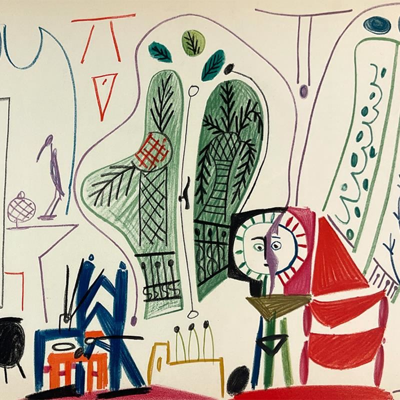 "Carnet de Californie 8.11.55-IV" is a vintage lithograph on paper by Pablo Picasso (1881-1973). This piece is from Picasso's Carnet de Californie Series and was printed in Paris, France by Mourlot Studios in 1959. This piece comes framed. Includes Letter of Authenticity. Measures approx. 18.5" x 24.5" (frame), 10.5" x 16.5" (image).