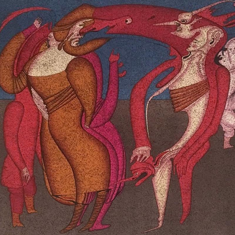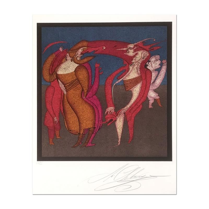 "Untitled 10" is a limited edition lithograph on paper from Mihail Chemiakin's Carnival Series, numbered and hand signed by the artist. Includes Certificate of Authenticity. Measures approx. 21" x 29" (image).