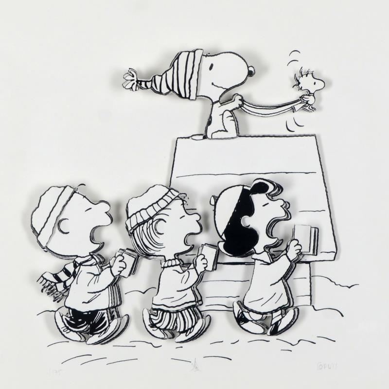 Created from the original artwork archived at the studio, "Caroling Crew" portrays the simple yet emotive art of Charles. M. Schulz, creator of PEANUTS. This 3D decoupage print on paper is hand numbered with Certificate of Authenticity. Measures approx. 23.5" x 15.5" (shadow box), 7" x 7" (image).