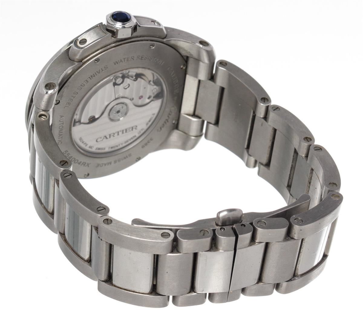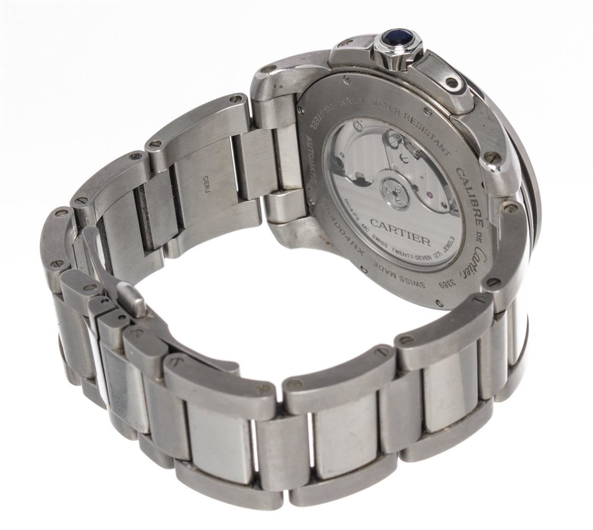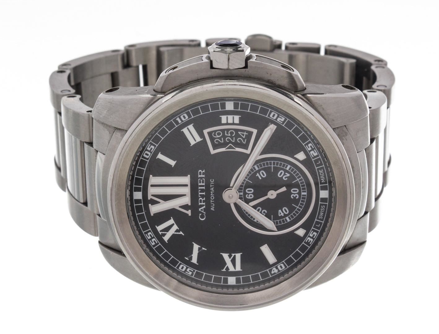 Cartier Black Face Calibre De Cartie Watch with silver-tone hardware.