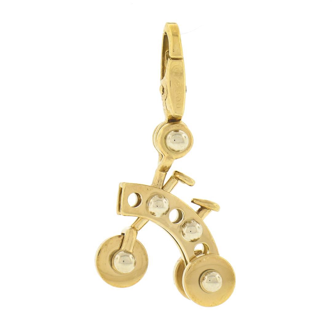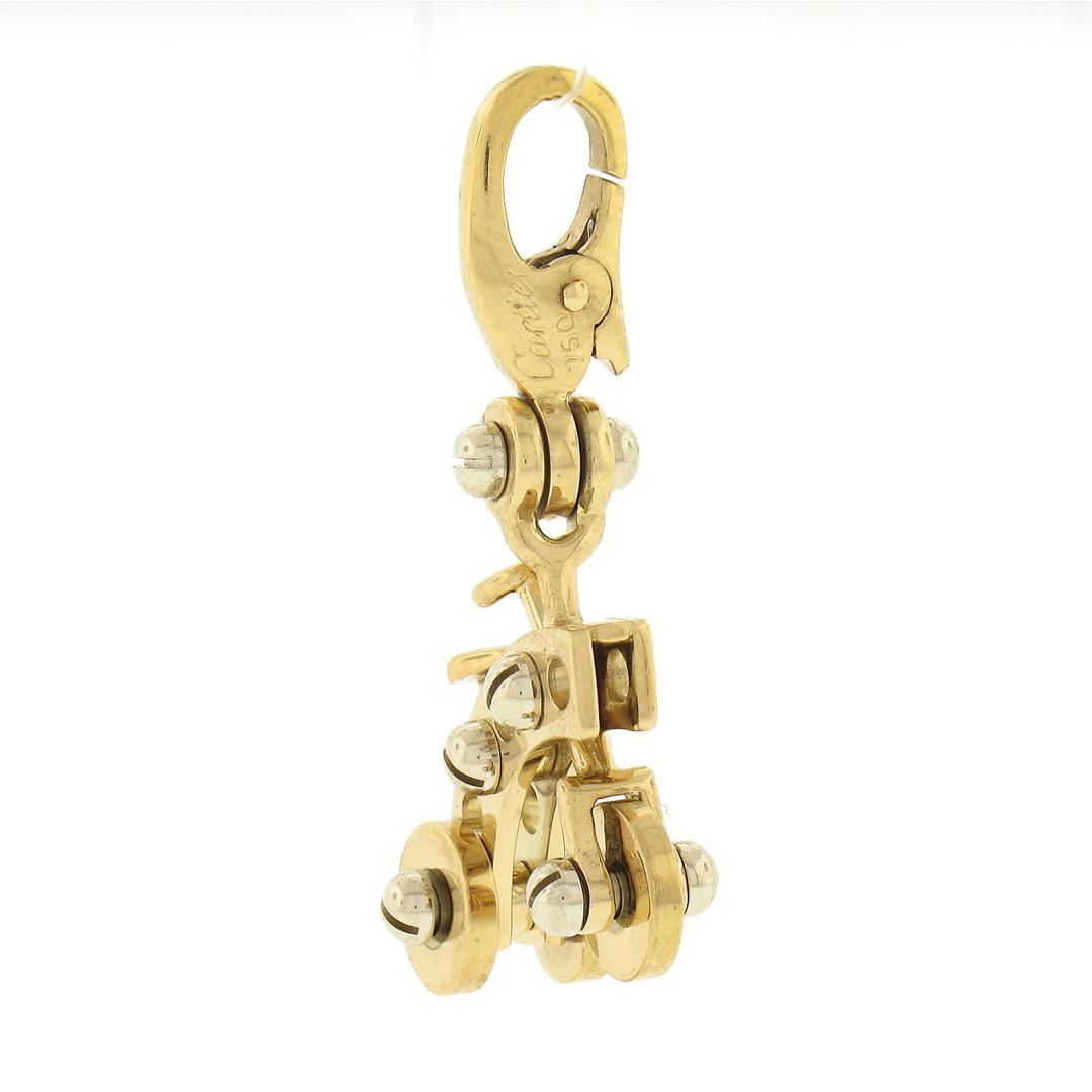 A solid 18k yellow gold charm pendant by Cartier. The pendant weighs a total of 4.85 grams, measures 27.8x14mm including the bail, and the inside of the bail measures 4.5x3mm.