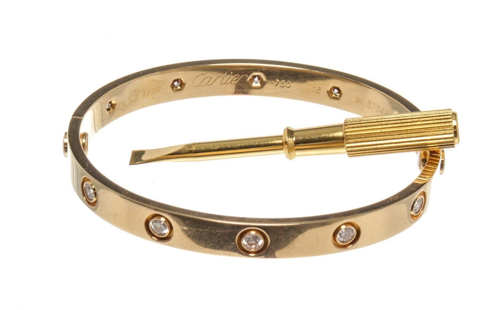 Cartier Gold Diamond Love 10 Bracelet with gold-tone hardware. Condition: Pre-Owned Good