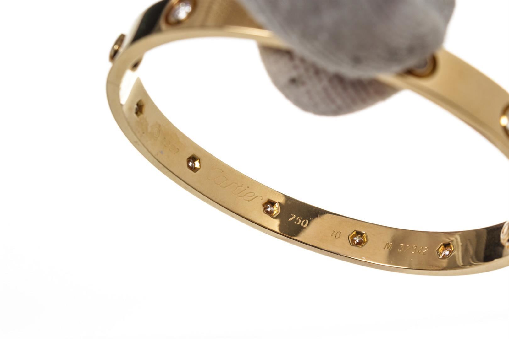 One Cartier Gold Diamond Love 10 Bracelet. Item is sold AS-IS. All available information is listed in the description and shown in the photo. Cartier Gold Diamond Love 16 Bracelet with gold-tone hardware. Dated in 1997 having the older screws. Comes with the screw but no box. M37342