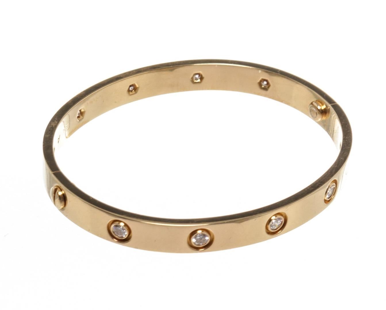 One Cartier Gold Diamond Love 10 Bracelet. Item is sold AS-IS. All available information is listed in the description and shown in the photo. Cartier Gold Diamond Love 16 Bracelet with gold-tone hardware. Dated in 1997 having the older screws. Comes with the screw but no box. M37342