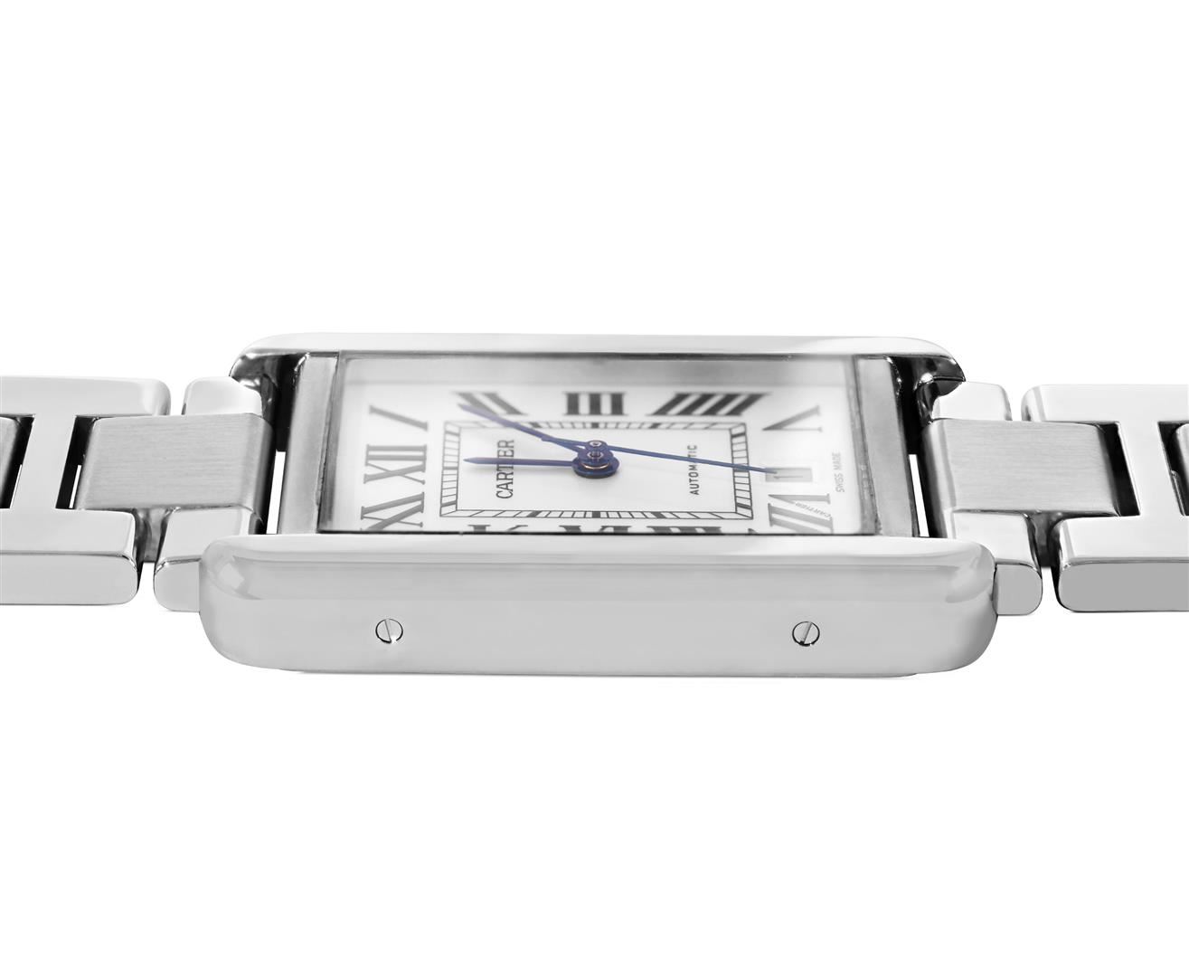 One Mens Pre Owned Stainless Steel Cartier Tank Solo XL Polished, Serviced & Electronically Tested. Cartier Stainless Steel Case: 31MM X 40MM Case, Cartier Stainless Steel Crown, Cartier Stainless Steel Bezel. Cartier Sapphire Crystal. Cartier Quickset Automatic Mechanical Movement. Cartier White Dial With Roman Hour Markers And Square Track. Blue Cartier Hands. Model: Stainless Steel Cartier Tank Solo XL, Condition: G-6 Extra Fine. Cartier Bracelet: Stainless Steel Cartier Band With Butterfly Folding Clasp. Bright Polish & Satin Finish. 7.0 Inch Length, Adjustable. Butterfly Folding Clasp. This Watch Has Been Serviced And Polished It Is Free of All Scratches And Dents.