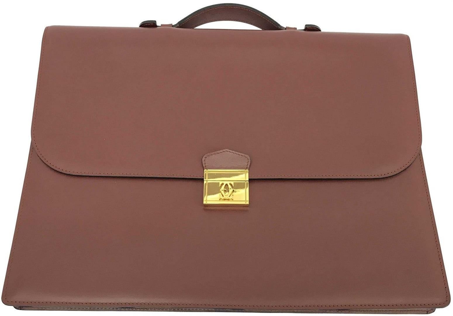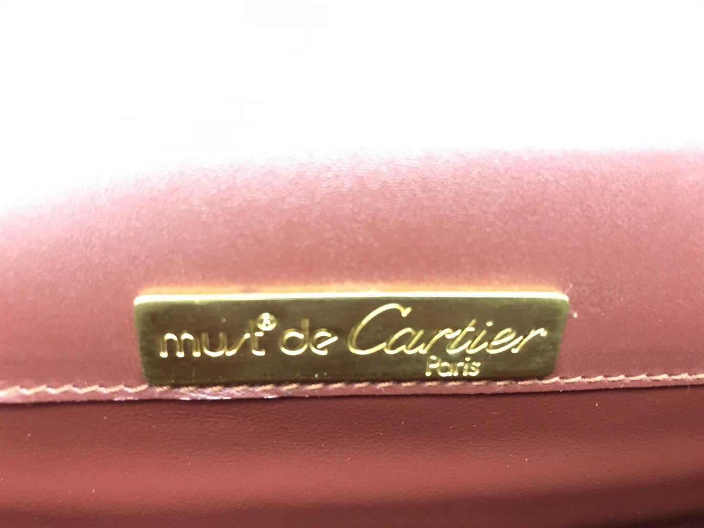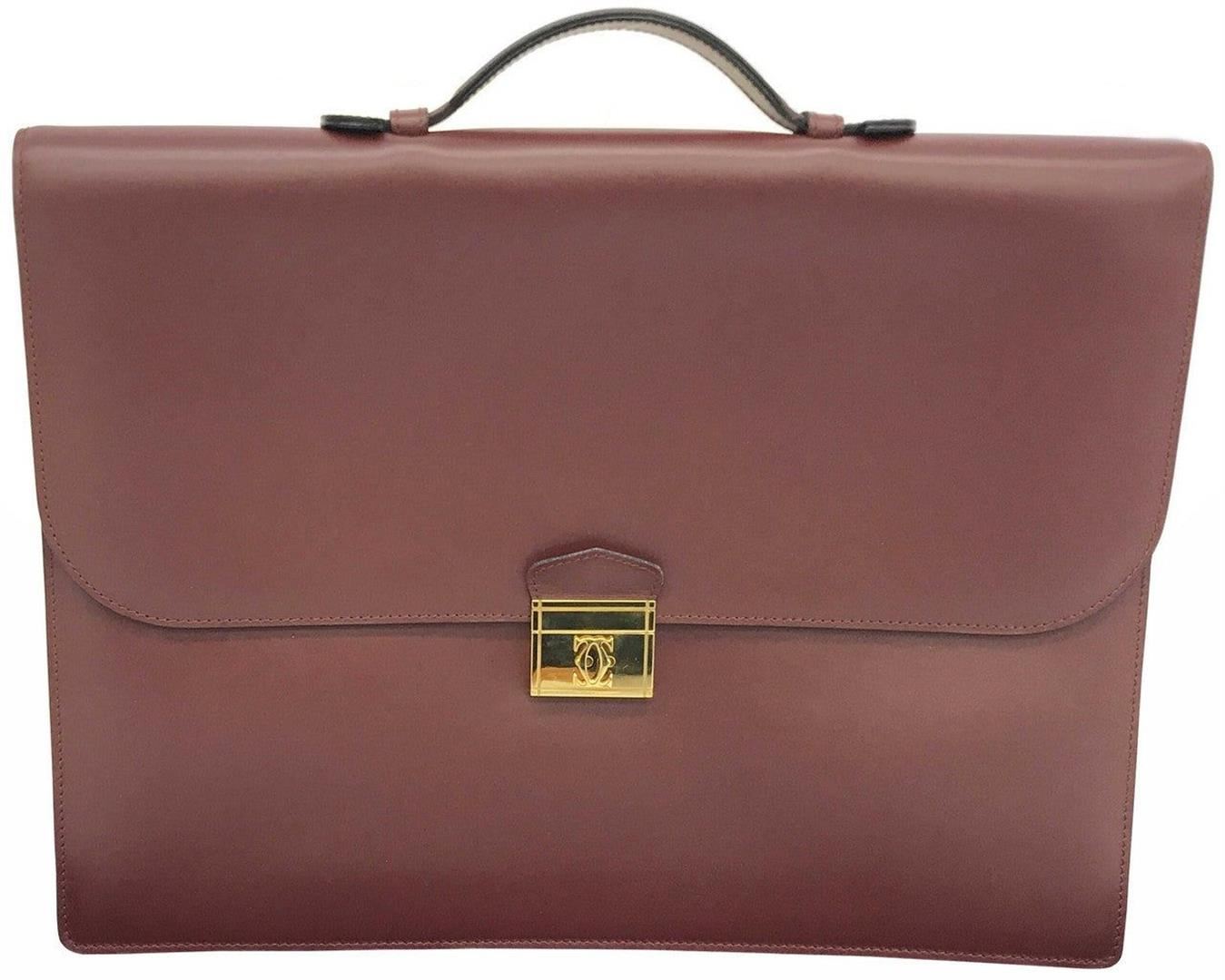 Cartier Red Must De Cartier Leather Briefcase Bag with gold-tone hardware, trim leather, leather lining interior zip pocket, top handle and push lock closure.