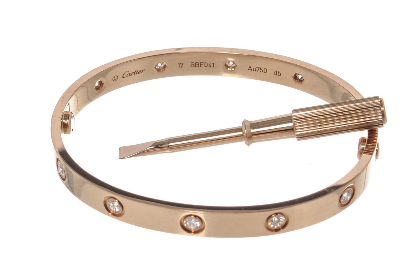 Cartier Rose Gold Love Bracelet 17 serial code BBF041, comes with screw driver and is newer screw system