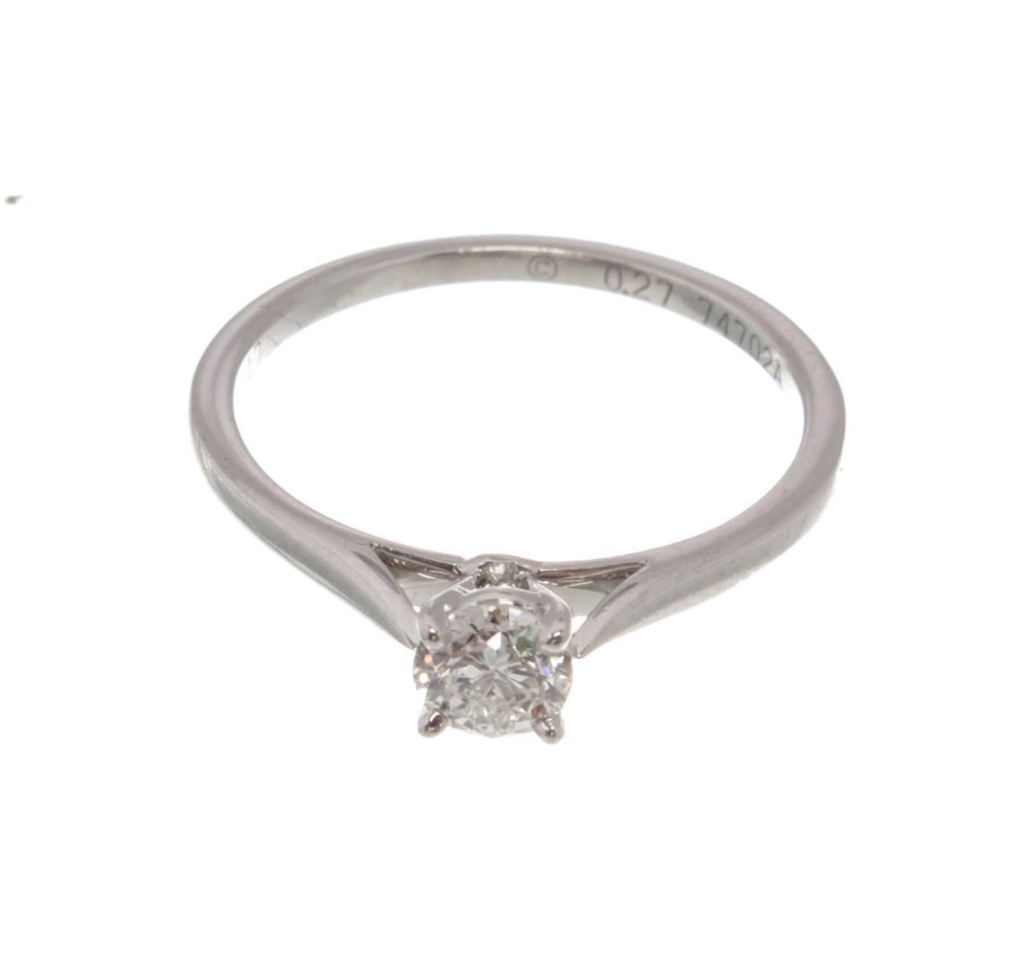 One Cartier Silver Diamond 27ct Ring. Item is sold AS-IS. Please check photos and descriptions for all available details. Cartier Silver Diamond 27ct Ring with silver-tone hardware. Size: 4