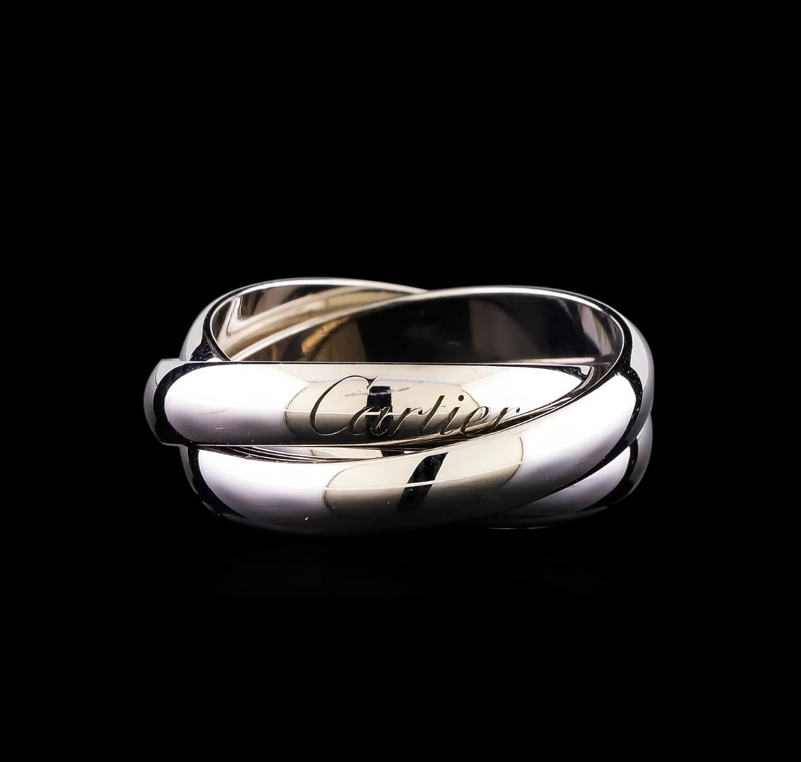 One Cartier Trinity Ring including: 18KT White Gold, 3 interlinked bands with a total weight of 7.8 grams, markings of "750" and "Cartier" on the inside of one band, and a Certificate of Authentication from Cartier.