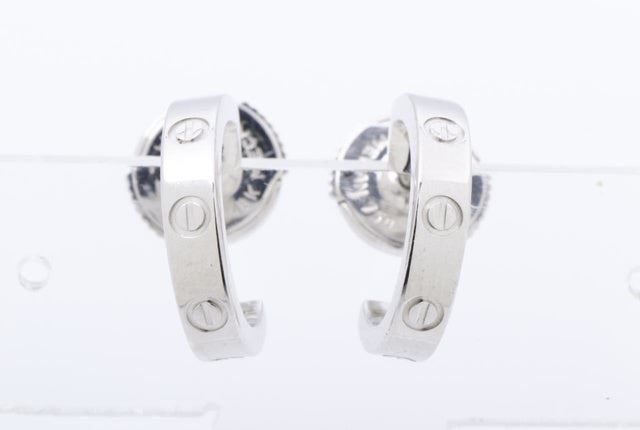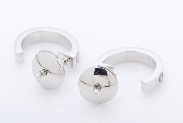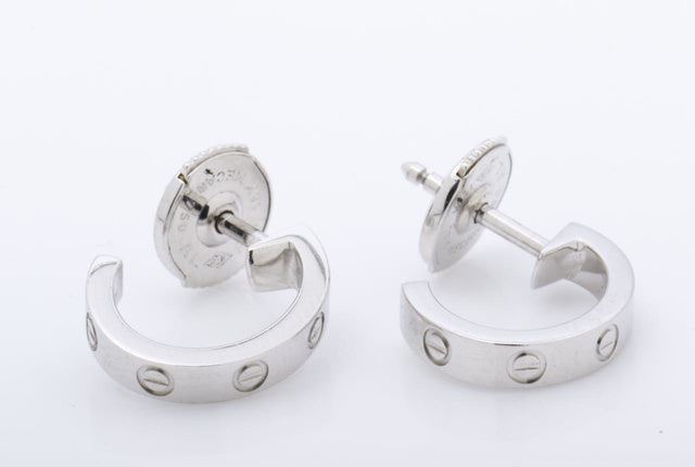 The LOVE collection from Cartier is a cult classic that features whimsical screw heads to "secure" your love for one another. These "Mini" LOVE Earrings feature screw detailing set on stunning 18k White Gold.